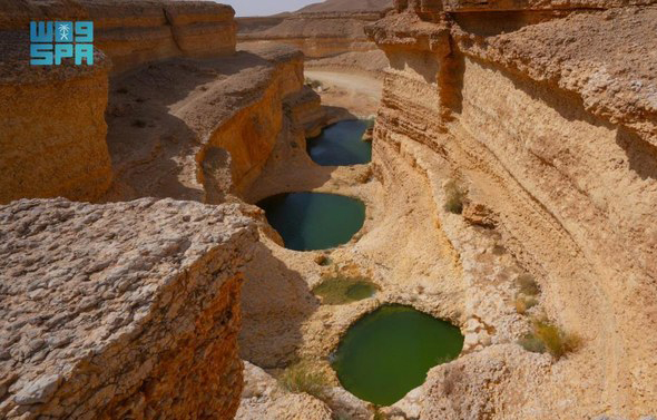 Qalta Umm Qalidah, east of Tamir, is renowned for its unique natural landscape, scenic views, and natural rock formations and lakes, in addition to its strategic geographical location close to Riyadh. The Al-Khafs gardens are distinguished by the charming and unique beauty of the green palette they provide amid golden sands.